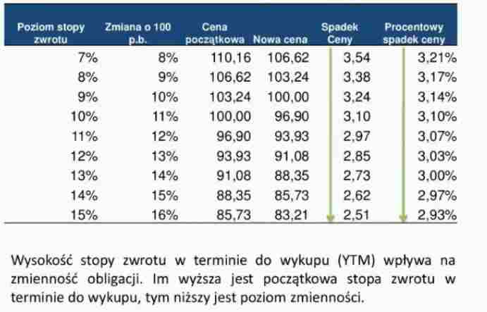 - Im niższe oprocentowanie obligacji, tym wyższa jest jej zmienność.