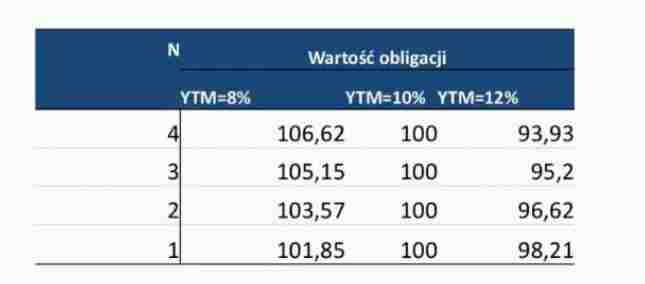 Innymi słowy modified duration pokazuje o ile zmieni się wycena obligacji przy wzroście lub spadku rentowności o określony zakres